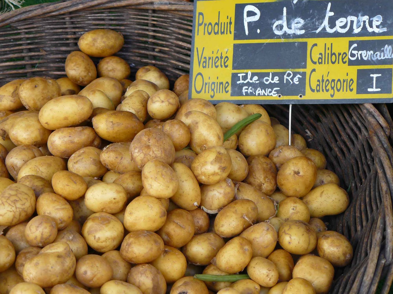Outdoors there was a nice selection of local fruits and vegetables - check out the provenance of these pommes de terre: