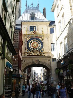 When I was planning my trip across France, I knew I wanted to get up to Brittany or Normandy for a day or two. Unfortunately, that was easier said than done; train routes and schedules (and prices!) made it quite difficult to get to Brittany from anywhere, or to Normandy unless you passed through Paris to do so. So though I had planned to end my time entirely in Paris, it became clear that it might be easier to arrive in Paris a day or two earlier and then make a day trip up to somewhere in Normandy - after all, it was only an hour or two on the train. Once we had decided to spend a day in Normandy, it was tough to decide where to go. In many cases, the towns' biggest attractions were the memorials for the second world war (remember D-Day?); in other cases, the towns sounded like seaside tourist havens rather than real cities. In the end, we opted for Rouen, the historic capital of the region.
